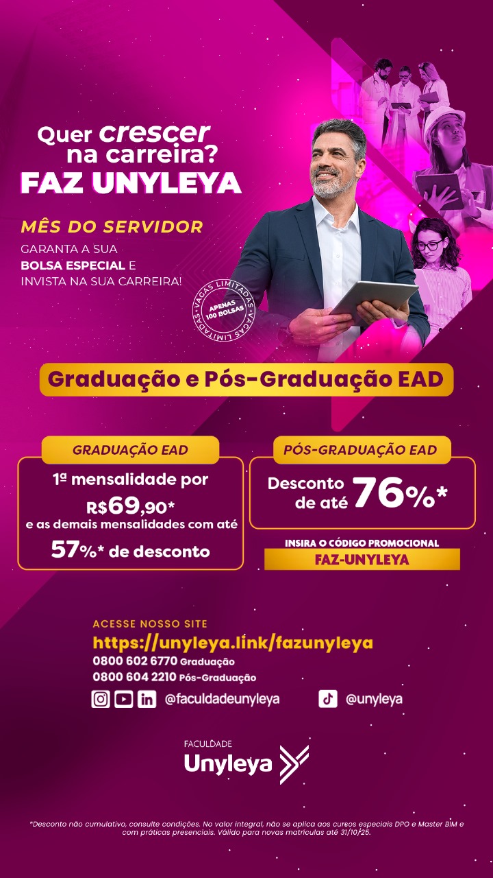 Neste Mês do Servidor Público, a Unyleya celebra o seu compromisso diário em garantir o funcionamento e a qualidade dos serviços essenciais à população. Seu trabalho é vital!